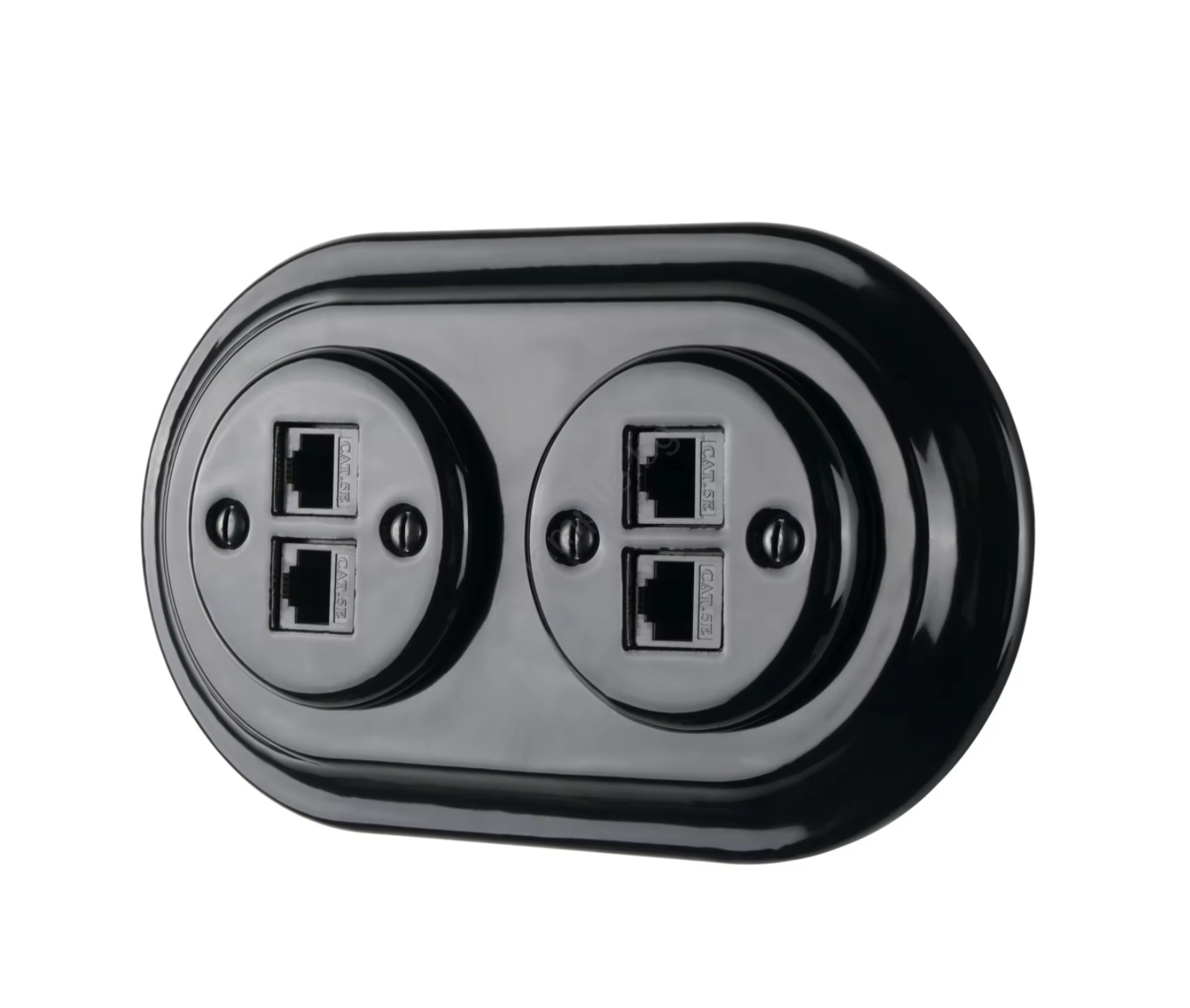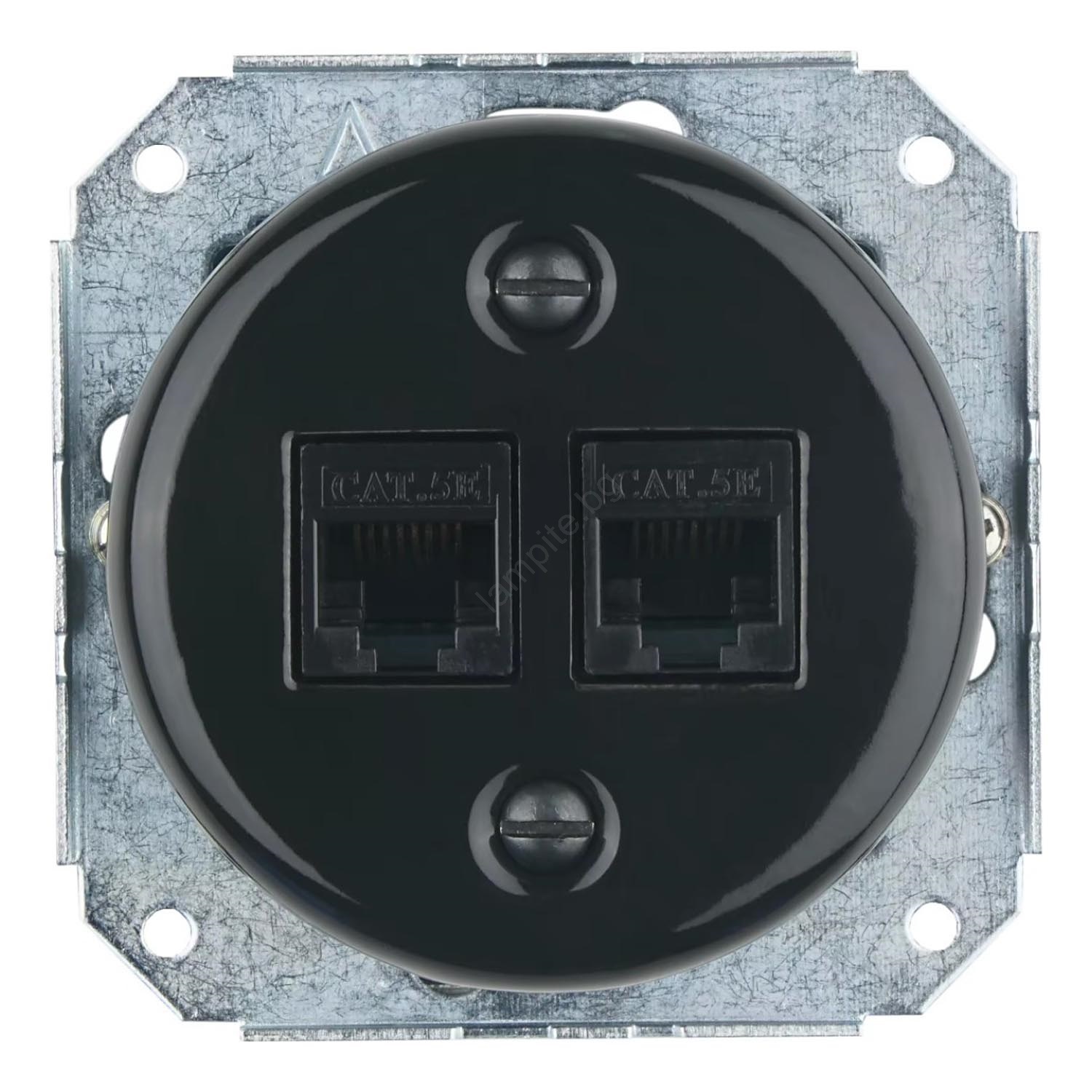 Bohemia-Design - Порцеланова ретро Ethernet розетка без рамка, 2x CAT5e, черна