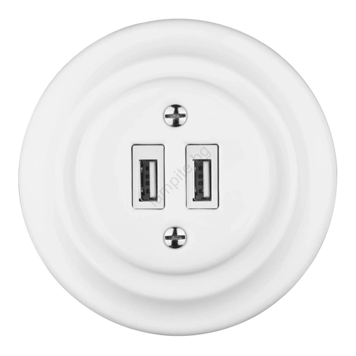 Bohemia-Design - Порцеланова ретро USB розетка с рамка 2x USB-A бяла