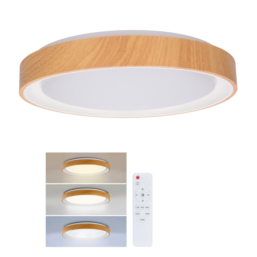 Brilagi - LED димируемо таванно осветително тяло FLOCO LED/48W/230V Ø 40 cm дървесен декор/бял + дистанционно управление