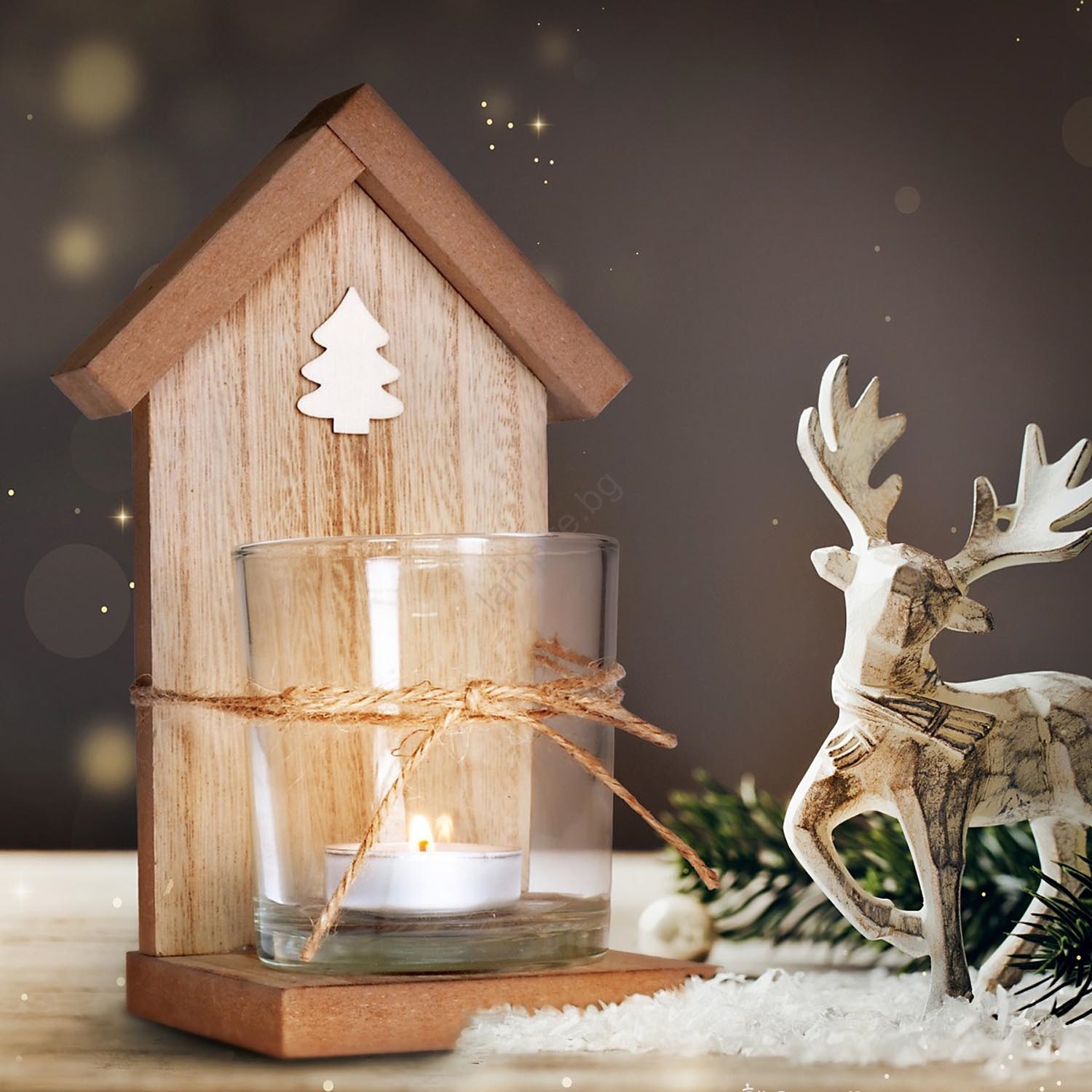• Коледна декорация под формата на къщичка за една чаена свещ.