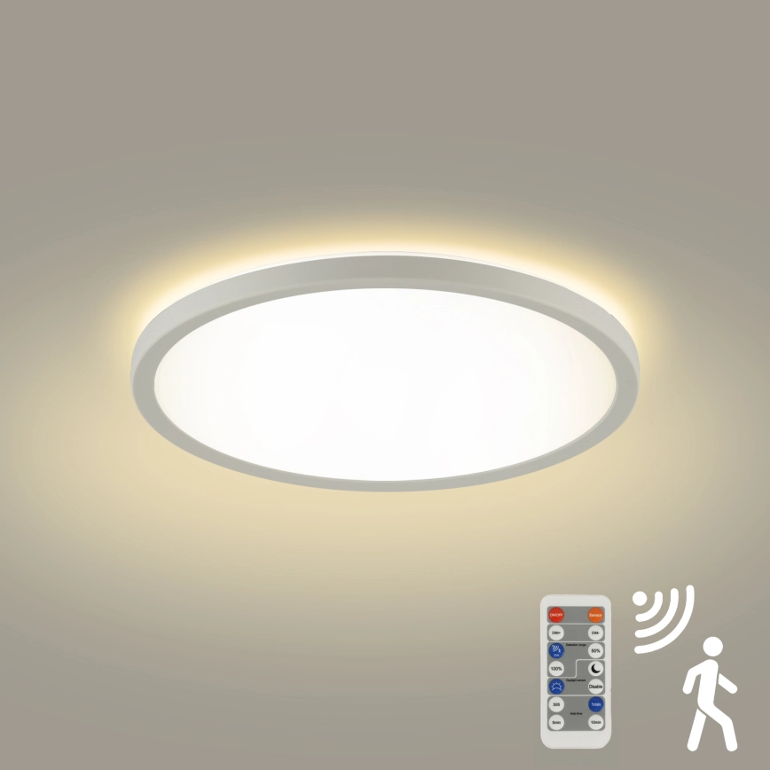 Brilagi - LED регулируемо осветително тяло с датчик за движение и здрач ULTRA SLIM LED/18W/230V Ø 30 см + дистанционно управление