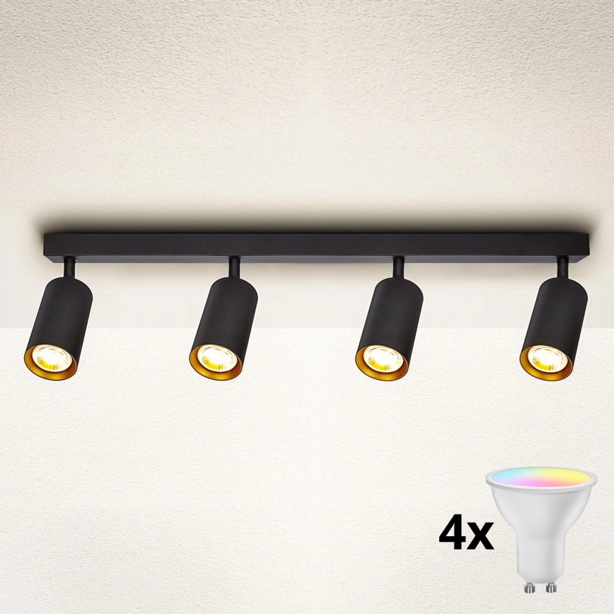 • Brilagi - LED RGBW димируемо точково осветително тяло SELE 4xGU10/6W/230V 3000K черно/златисто + дистанционно управление