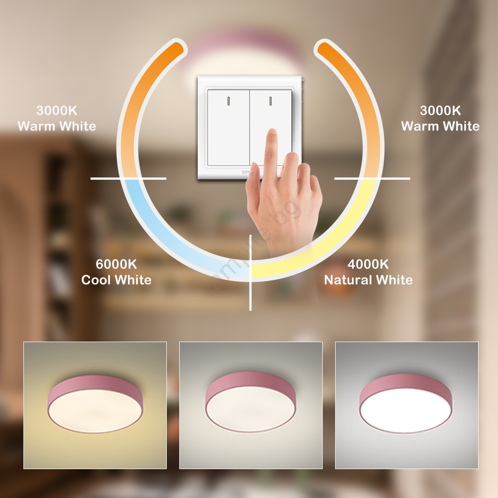 • Промяна на цветната температура стъпково с просто натискане на стенния ключ.