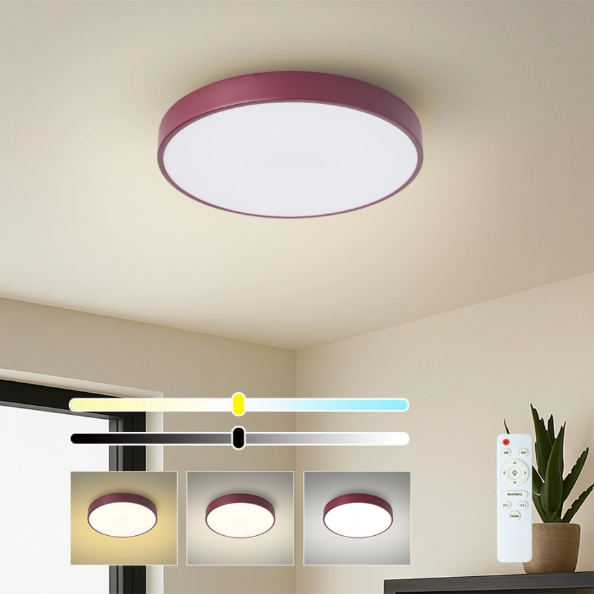Brilagi - димируемо таванно LED осветително тяло POOL LED/36W/230V 3000-6000K диаметър 30 см бордо + дистанционно управление