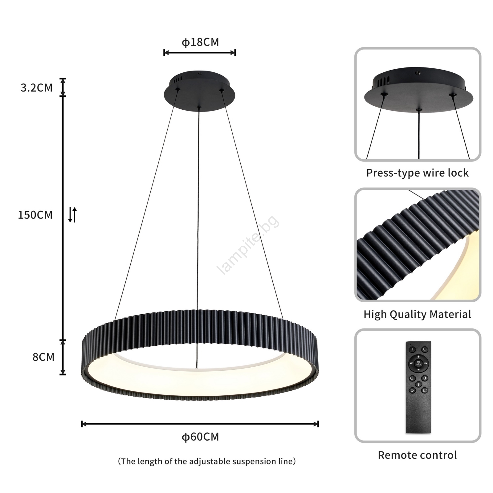Brilagi - Димируем LED полилей на кабел FALCON MODERN LED/54W/230V 3000-6500K Ø 60 cm черен + дистанционно управление