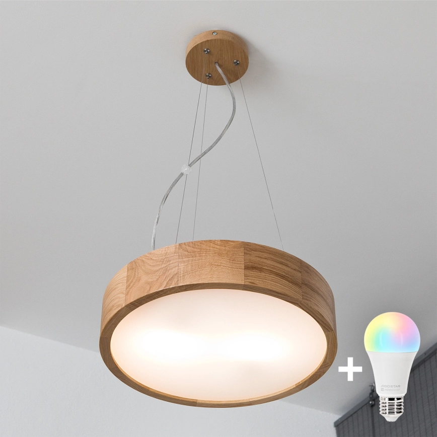 Brilagi - LED RGBW димируем полилей на кабел CARVALHO 2xE27/15W/230V 2700-6500K Wi-Fi дъб Ø 37 см