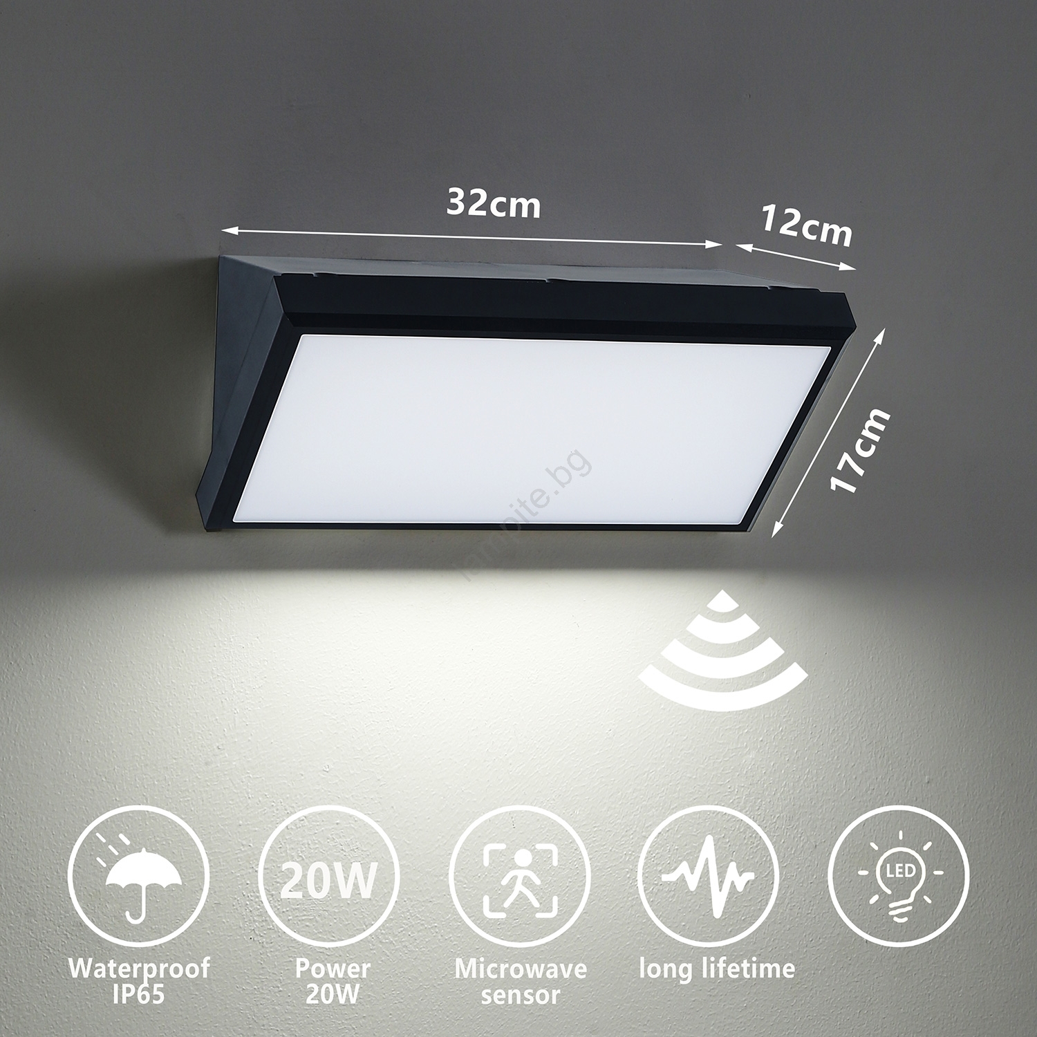 Brilagi - LED външно стенна лампа с сензор TRIANGLE LED/20W/230V черен IP65