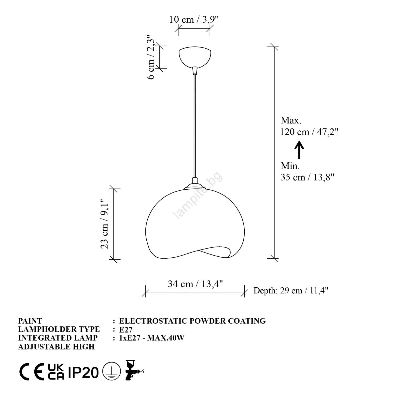 Brilagi - Пендан на кабел WABI SABI 1xE27/40W/230V Ø 34 см бял