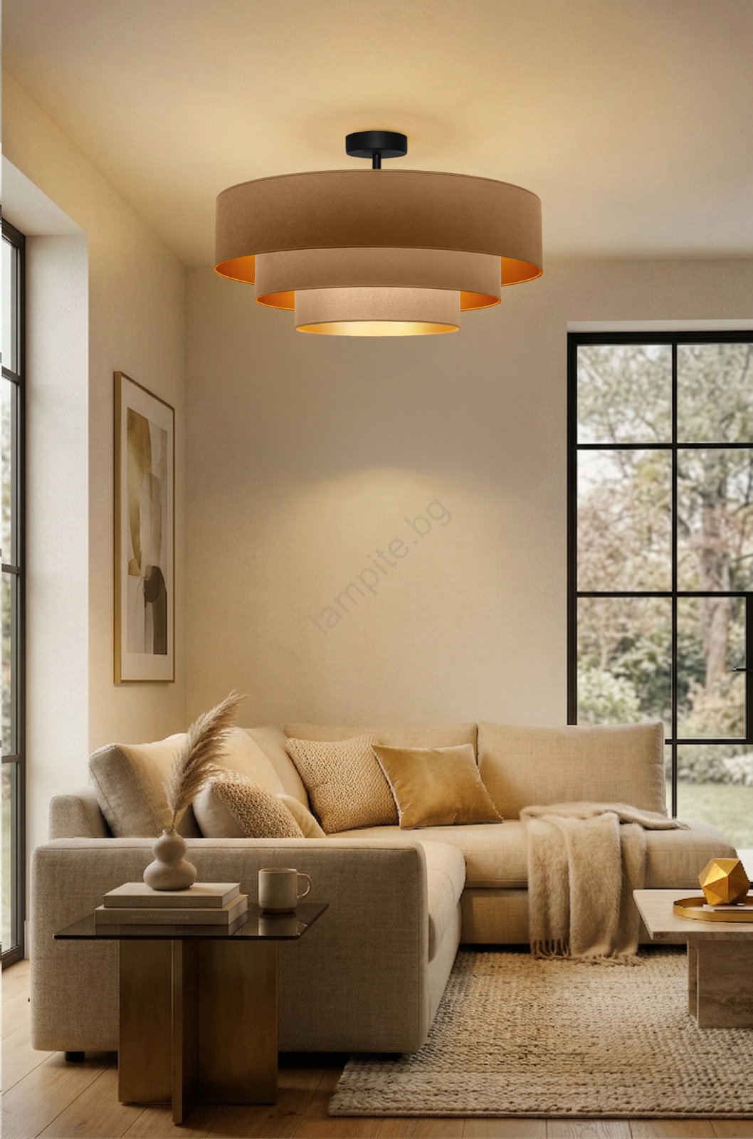 Brilagi - Плафон LUNETA 3xE27/60W/230V Ø 80 cm бежова/златна се отличава с приятен и функционален дизайн.  Подходяща е крушка с цокъл E27. Тук можете да закупите и други крушки на изгодни цени. Ще имате интересно допълнение към дома си.
