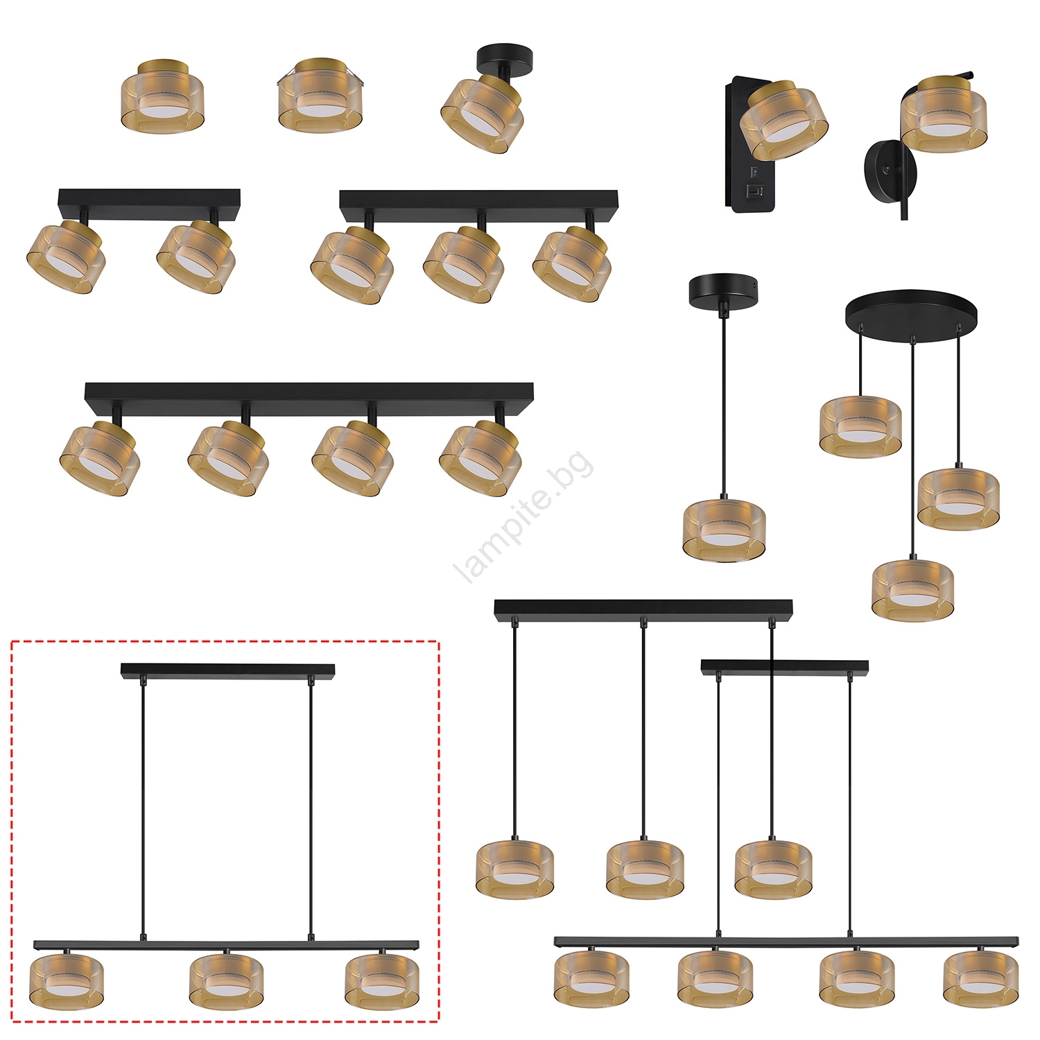 • Brilagi - LED Полилей на кабел AURA LUX 3xGX53/30W/230V черен/златист