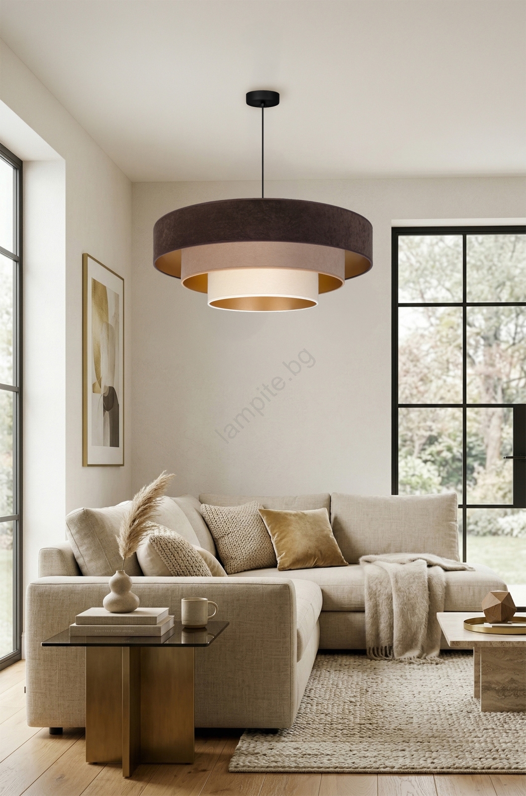 Brilagi - Полилей на кабел LUNETA 3xE27/60W/230V Ø 80 см кафяв/бежов/кремав се отличава с приятен и функционален дизайн.  Подходяща е крушка с цокъл E27. Тук можете да закупите и други крушки на изгодни цени. Ще имате интересно допълнение към дома си.