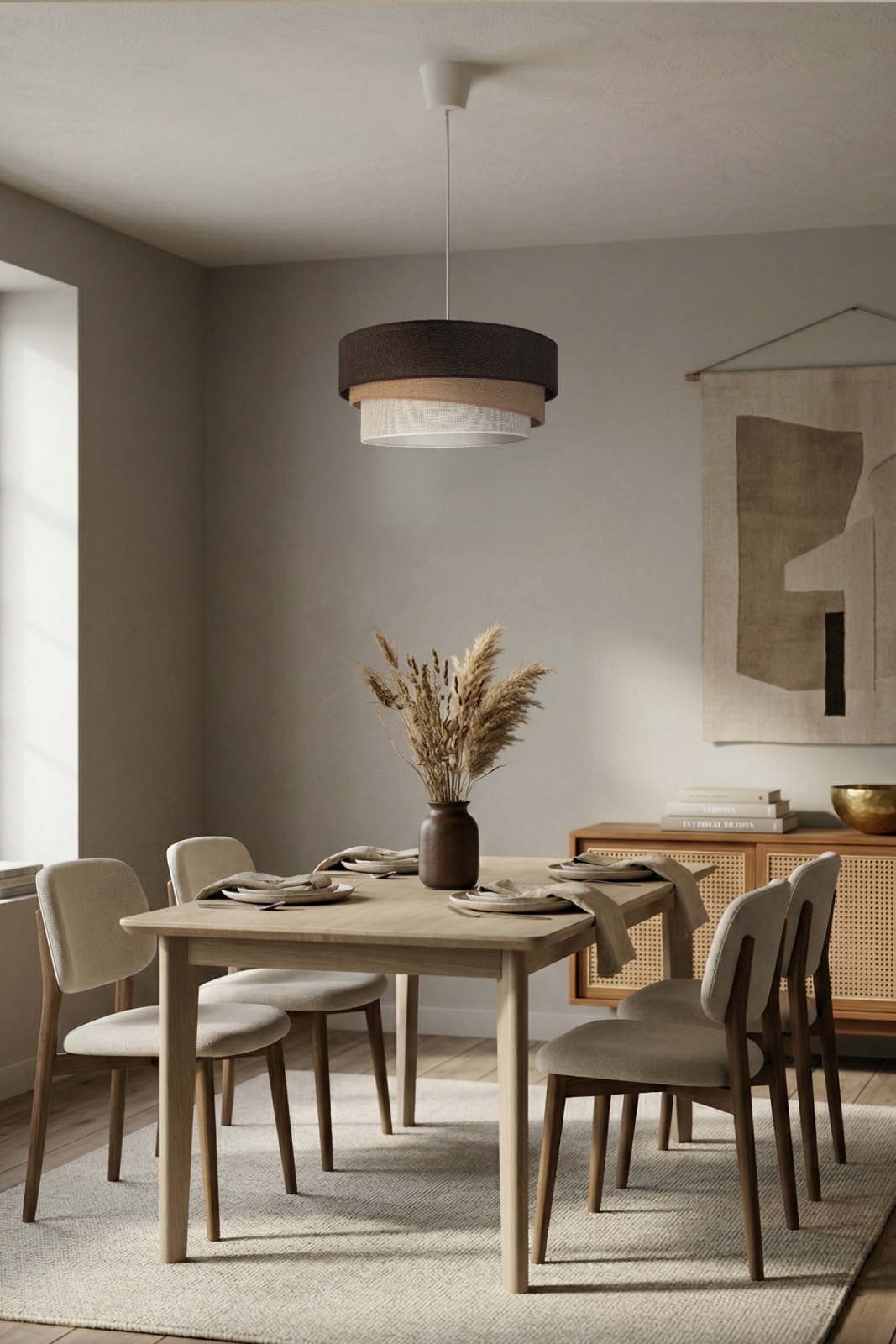Brilagi - Полилей на кабел TRIO 1xE27/60W/230V Ø 40 см кафяв/бежов/бял се отличава с приятен и функционален дизайн.  Подходяща е крушка с цокъл E27. Тук можете да закупите и други крушки на изгодни цени. Ще имате интересно допълнение към дома си.