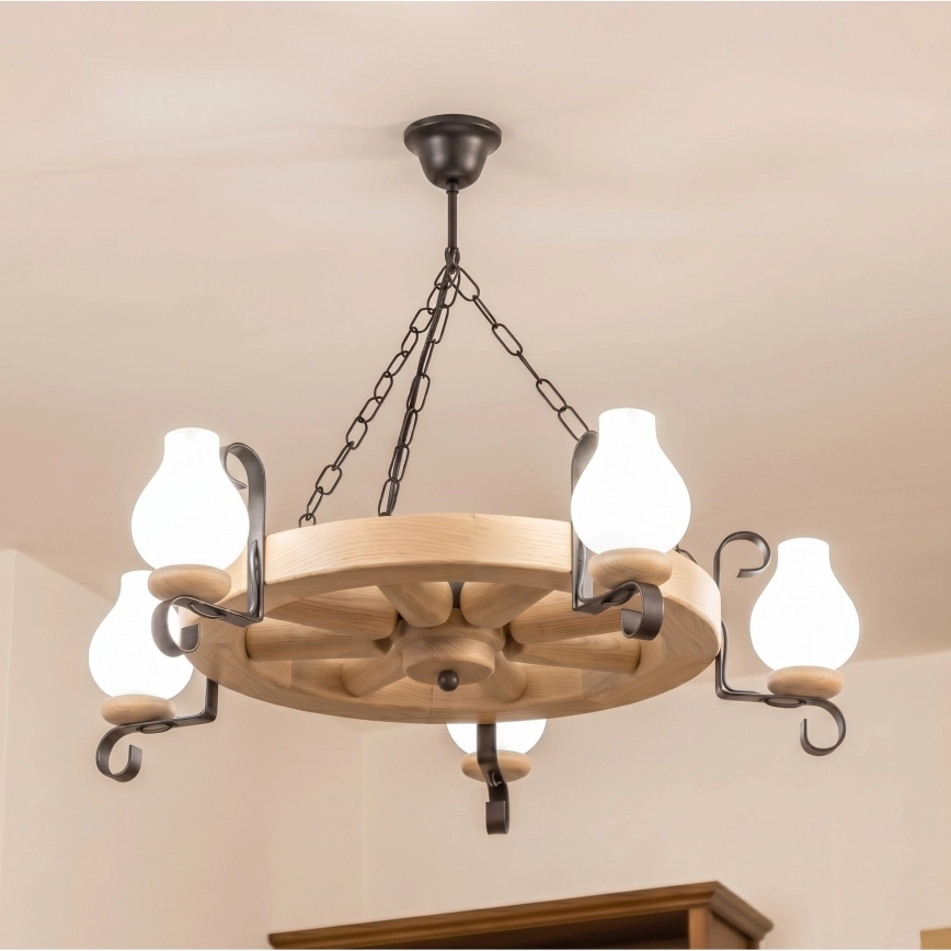 Brilagi - Полилей на верига ROATA 5xE14/40W/230V дъб се отличава с приятен и функционален дизайн.  Подходяща е крушка с цокъл E14. Тук можете да закупите и други крушки на изгодни цени. Ще имате интересно допълнение към дома си.