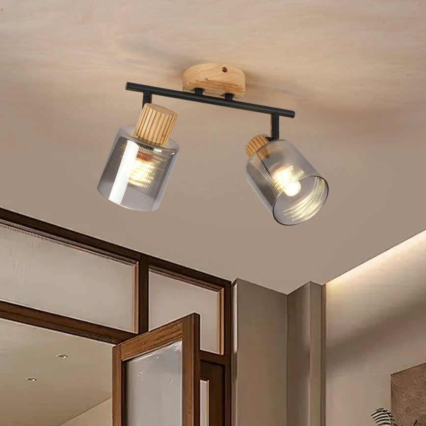 • Brilagi - Точково осветително тяло HYGGE 2xE14/15W/230V каучуково дърво/опушено