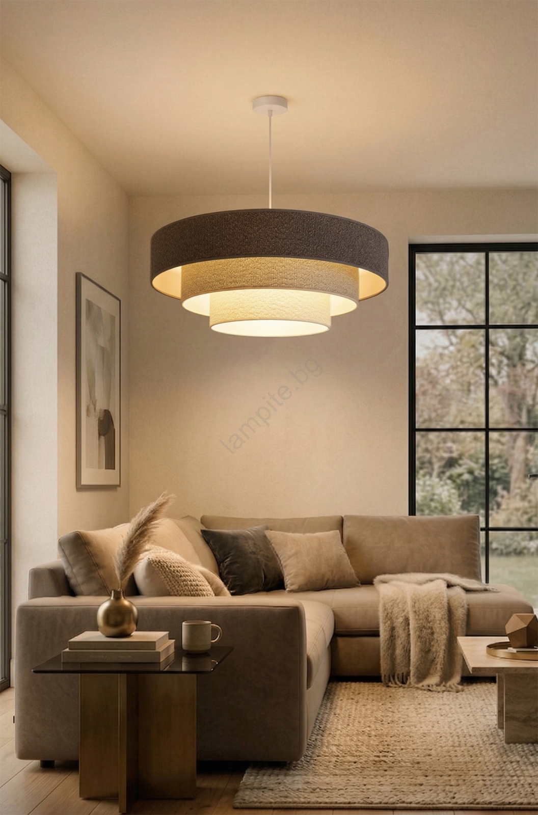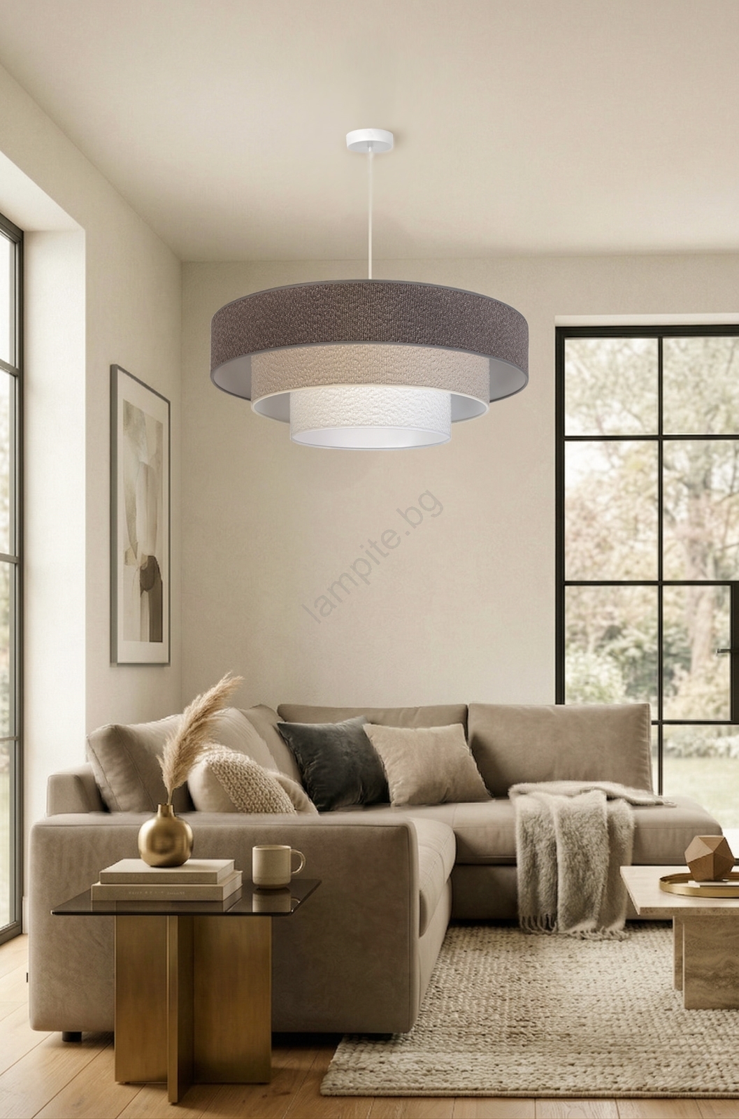 Brilagi - Висящ полилей на кабел LUNETA 3xE27/60W/230V Ø 80 cm сив/кремав/бял се отличава с приятен и функционален дизайн.  Подходяща е крушка с цокъл E27. Тук можете да закупите и други крушки на изгодни цени. Ще имате интересно допълнение към дома си.