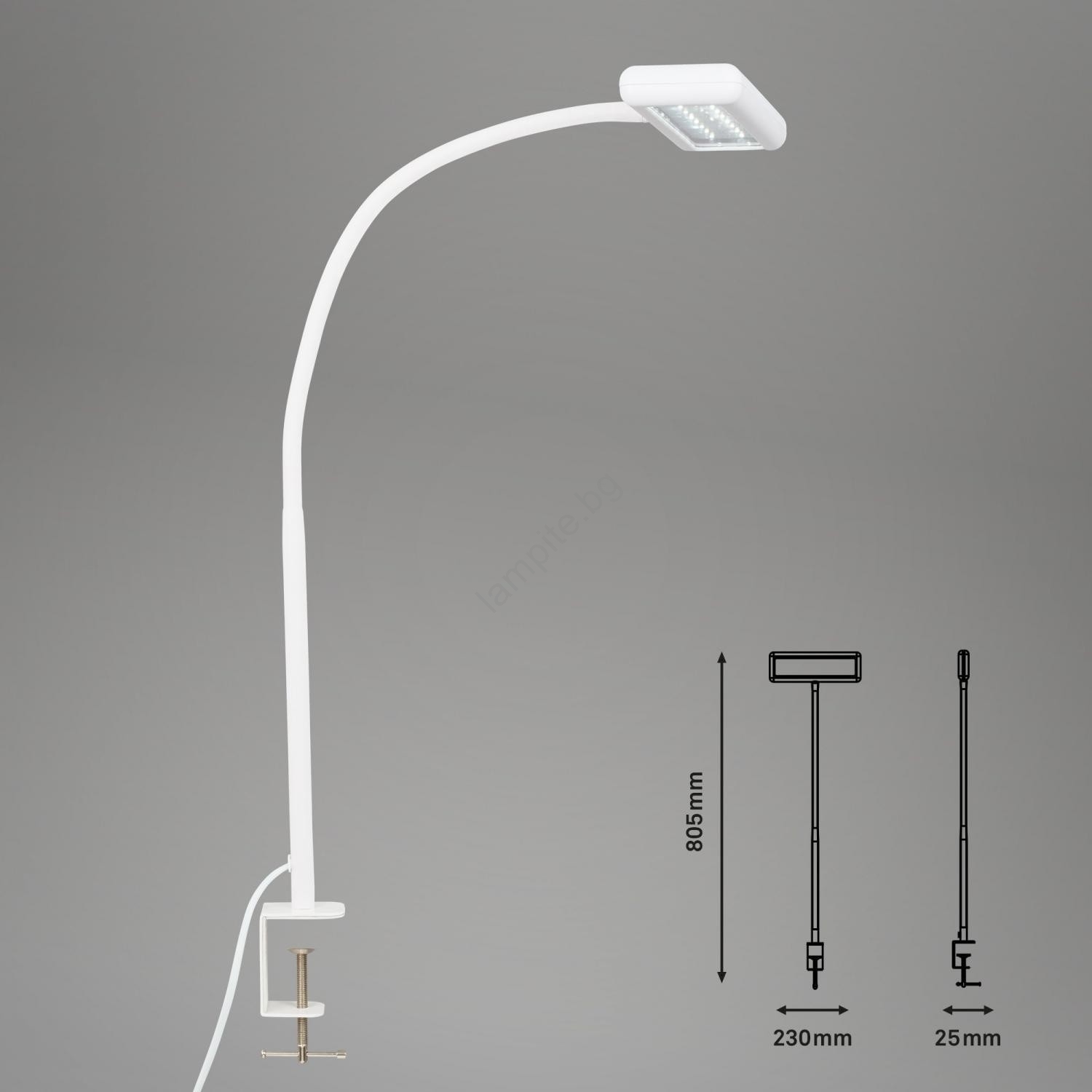 Brilo - LED Гъвкава настолна лампа с щипка TRASNA LED/7,5W/230V бял