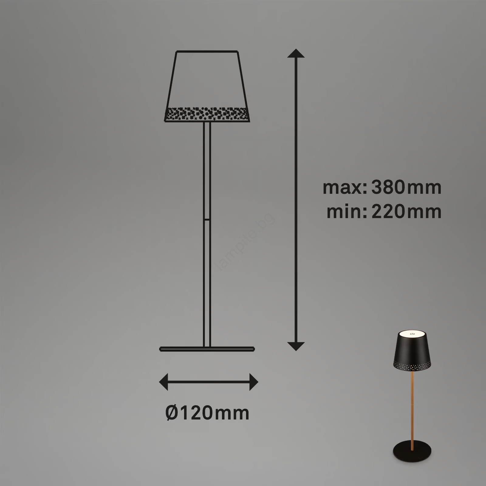 • Brilo - LED настолна лампа KIKI, с регулируема яркост, презареждаема, сензорна, за външна употреба, LED/2,6W/5V IP44 2600 mAh, черна