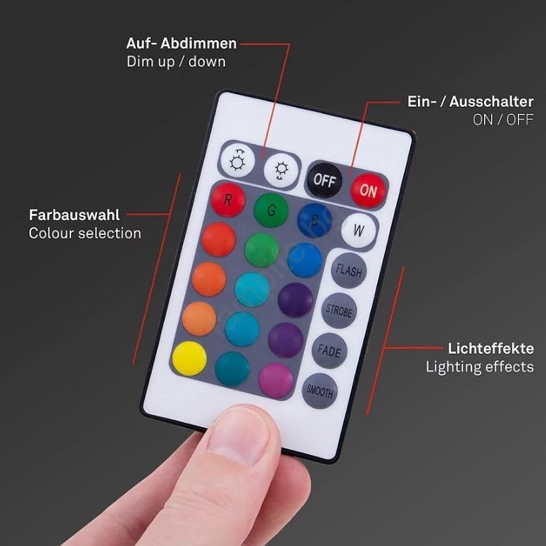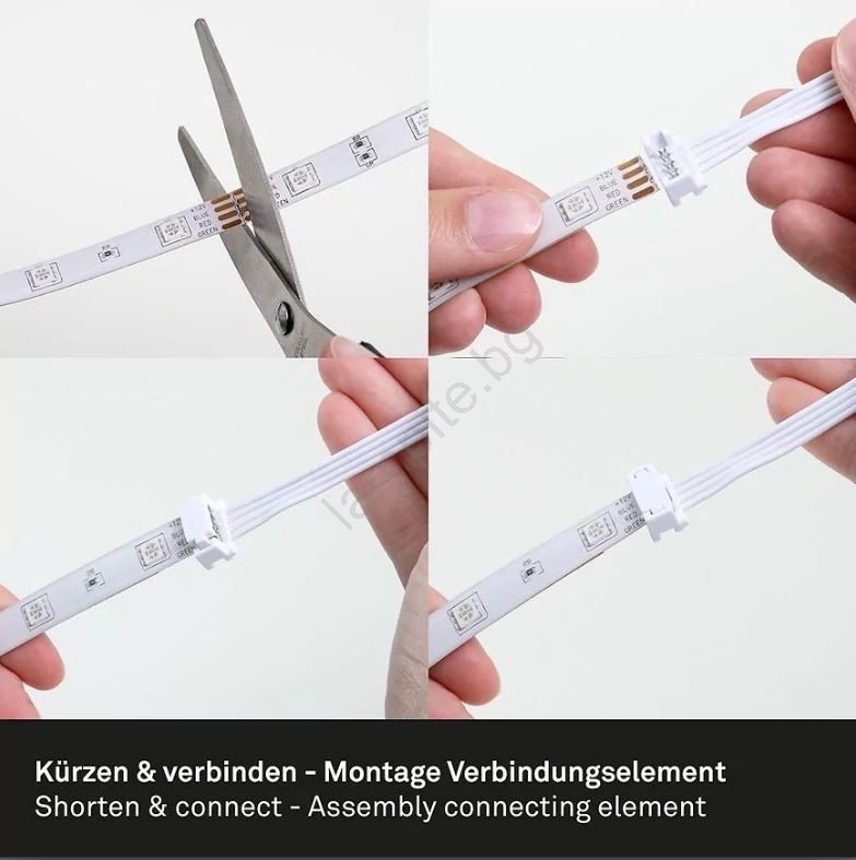 • В комплекта са включени 5 м LED лента, дистанционно управление, трансформатор, 1,5 м кабел, монтажна скоба за оптимално закрепване.