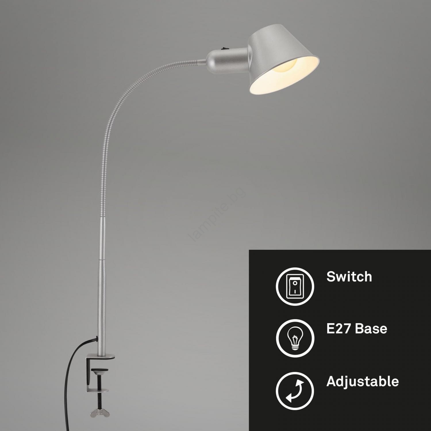 Brilo - Гъвкава настолна лампа с щипка 1xE27/10W/230V сребриста