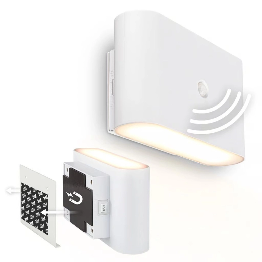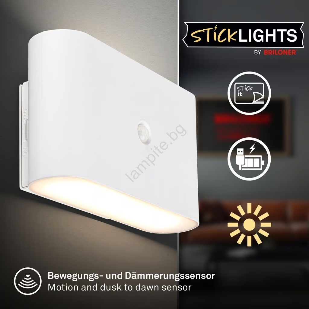 • Briloner 3878016 - презареждаемо LED стенно осветително тяло със сензор за движение и за здрач CHAT LED/3W/5V 2000 mAh бяло