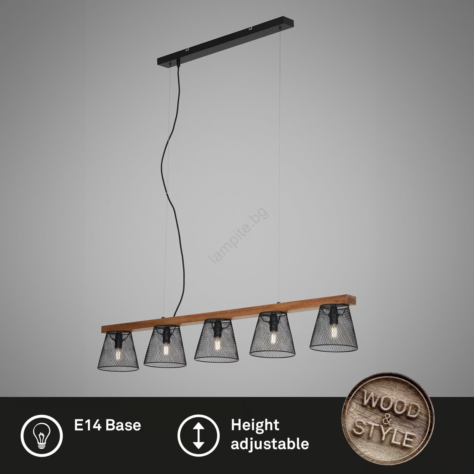 Briloner 4077-055 - Полилей на кабел WOOD & STYLE 5xE14/25W/230V каучукова дървесина се отличава с приятен и функционален дизайн.  Подходяща е крушка с цокъл E14. Тук можете да закупите и други крушки на изгодни цени. Ще имате интересно допълнение към дома си.