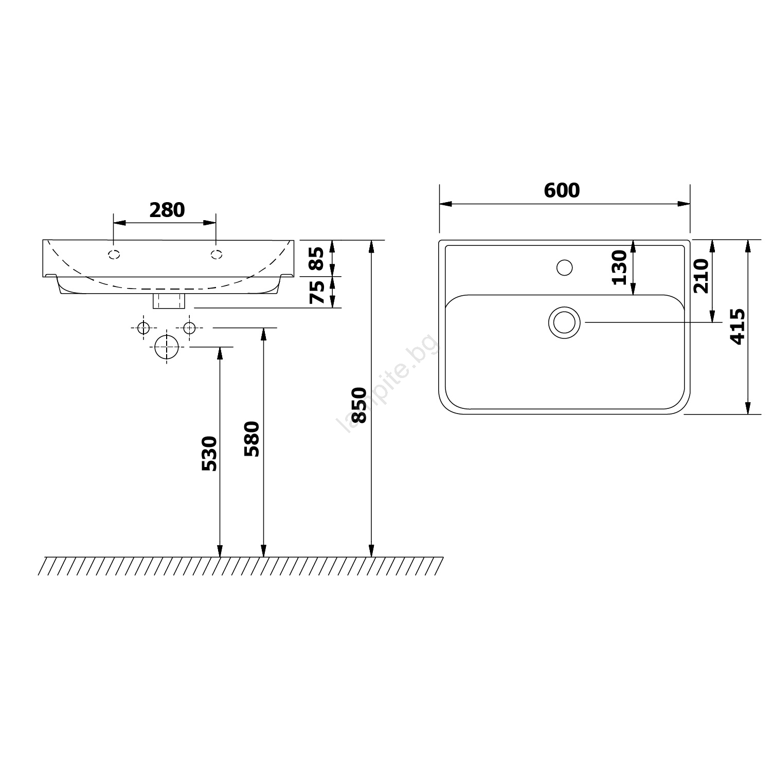 • Опаковката съдържа само умивалника без смесител и сифон.