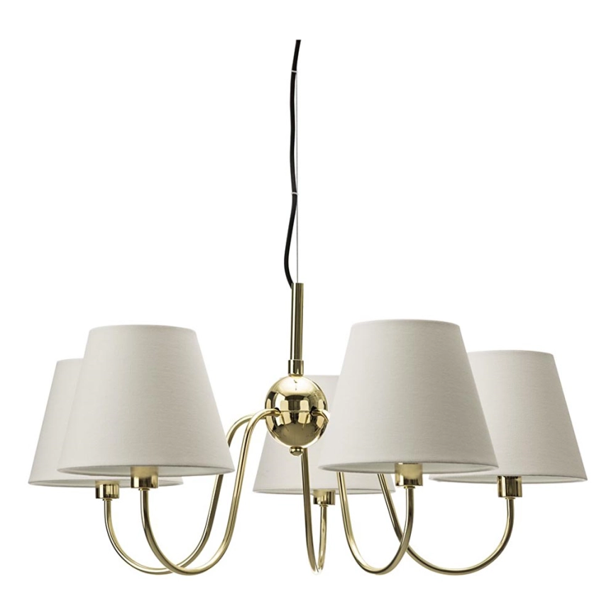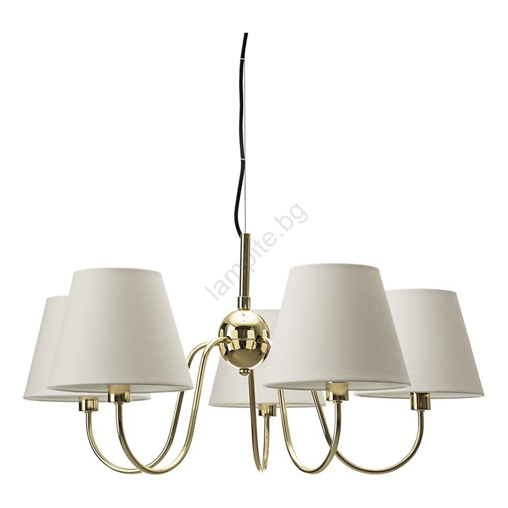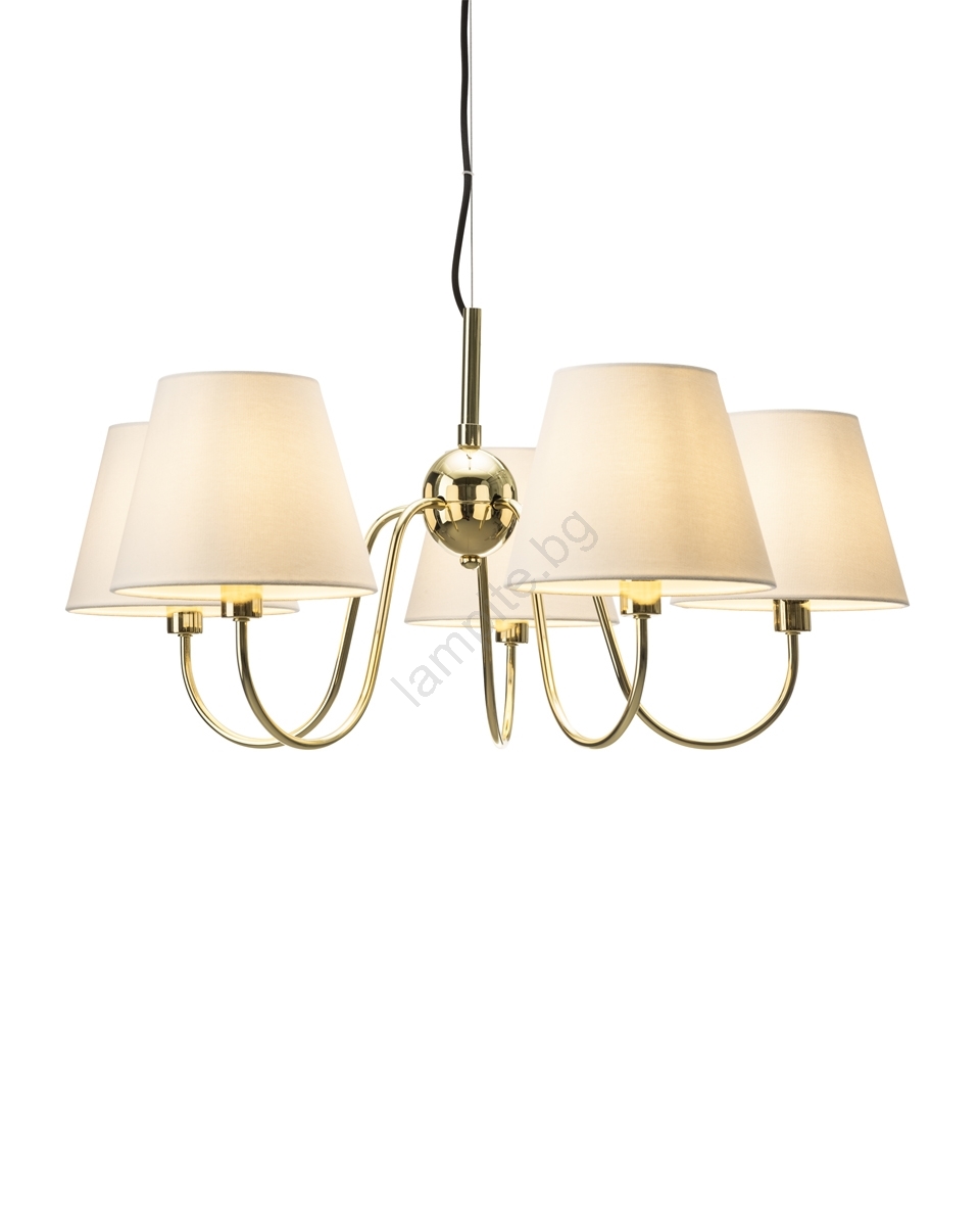 ByRydens - Висящ полилей на кабел LYNF 5xE14/8W/230V месинг/бял се отличава с приятен и функционален дизайн.  Подходяща е крушка с цокъл E14. Тук можете да закупите и други крушки на изгодни цени. Ще имате интересно допълнение към дома си.