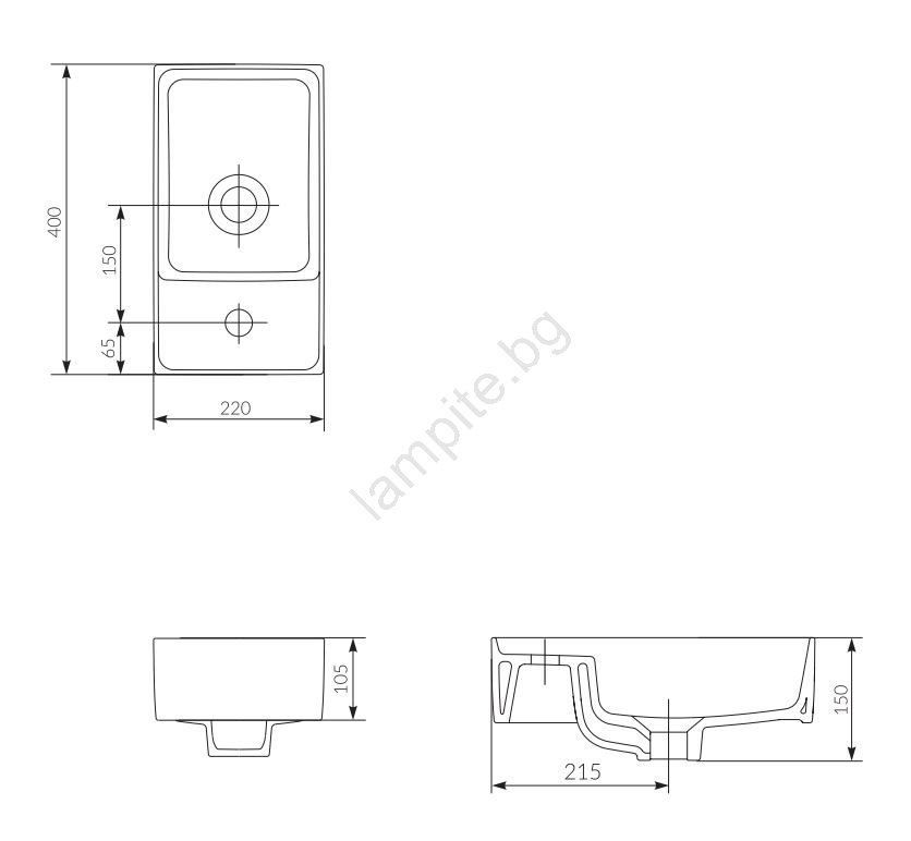 • Смесителят за умивалник и сифонът не са включени в комплекта.