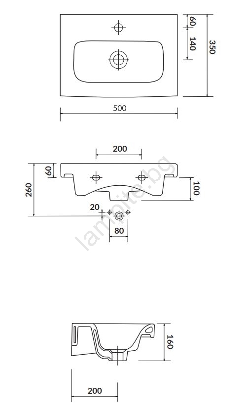 • Мивката е предназначена за монтаж върху плот или за окачване на стена.