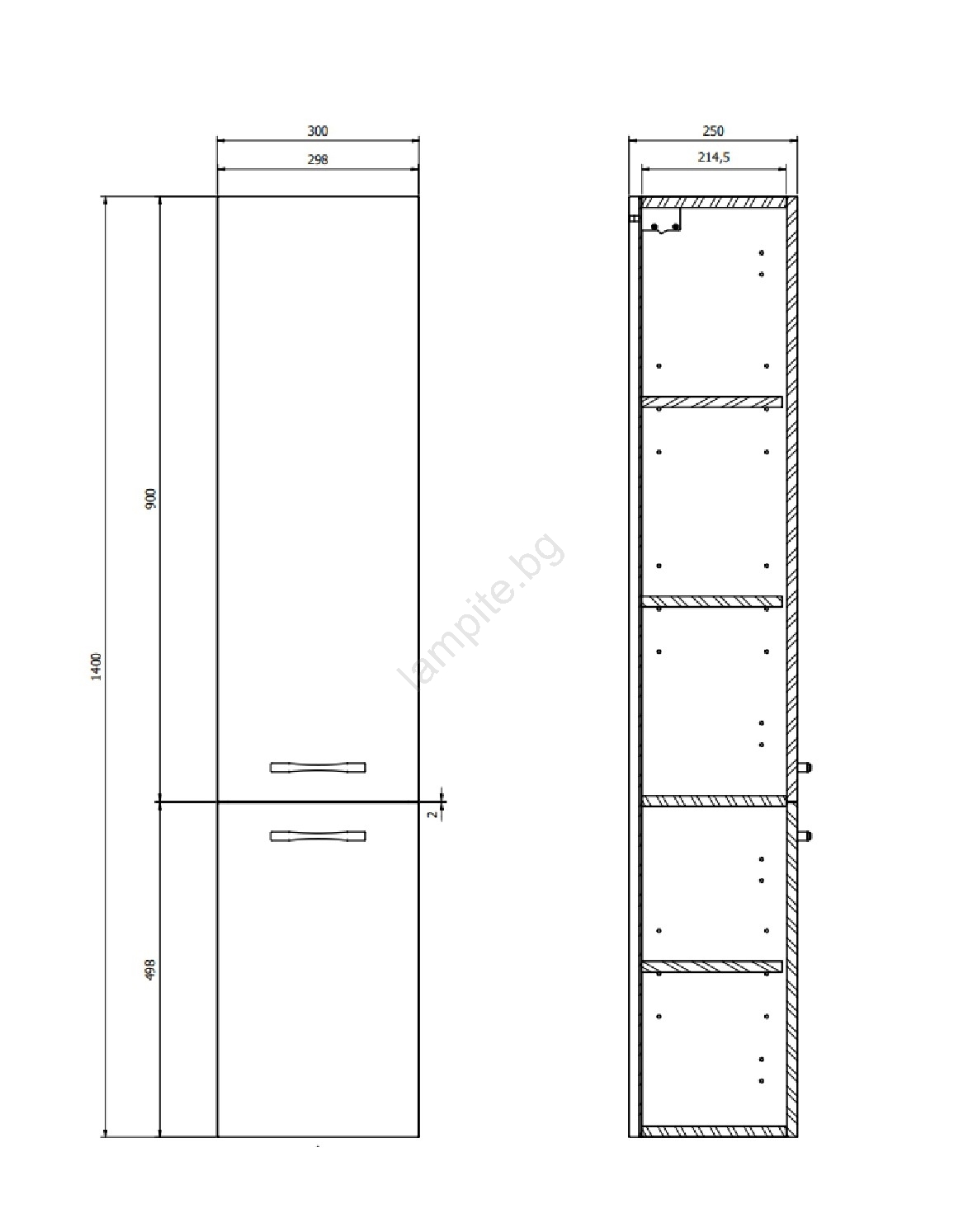 • Шкафът има две врати с механизъм за плавно затваряне.