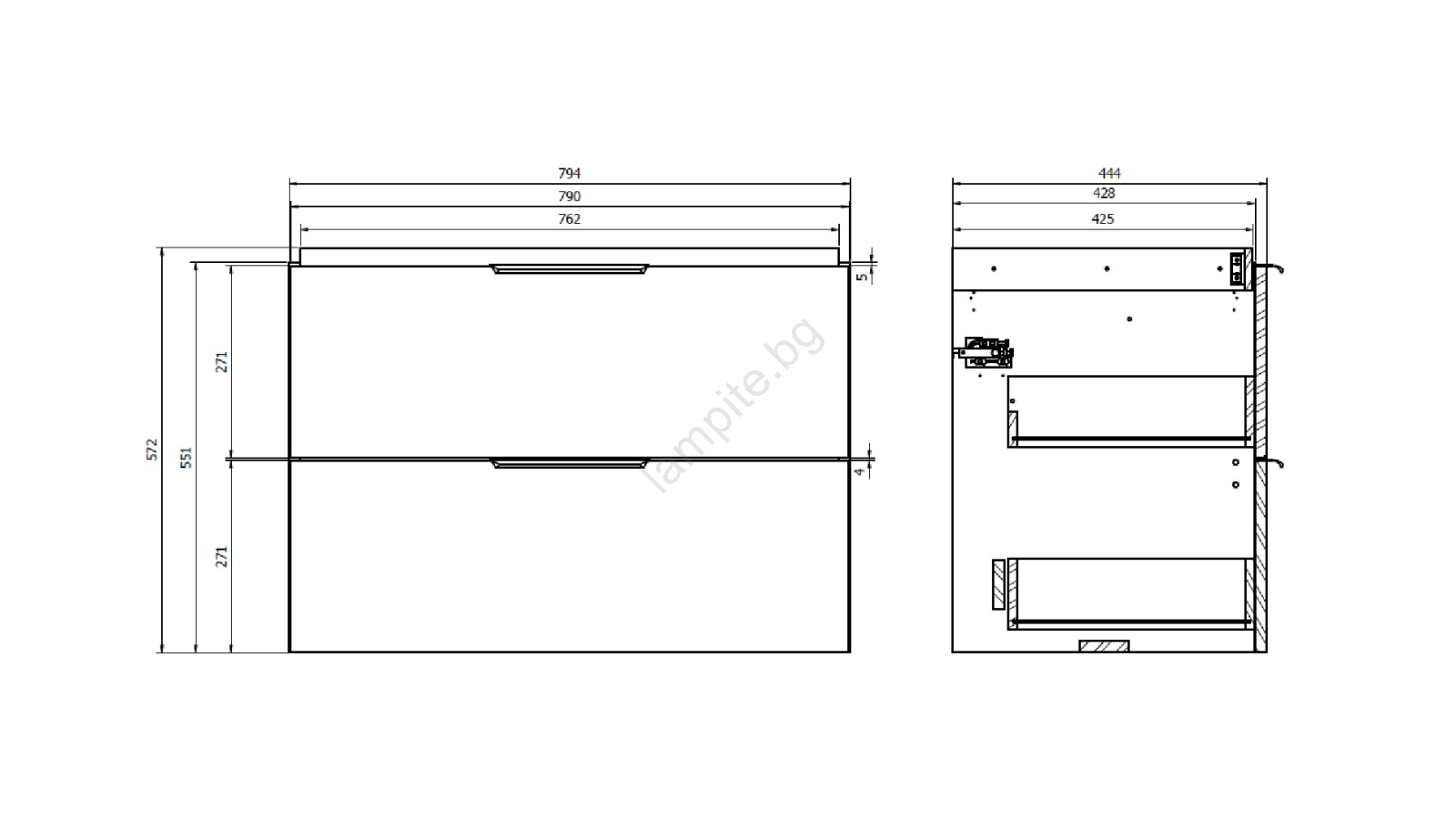 • Шкафът разполага с два просторни чекмеджета с механизъм за плавно затваряне.