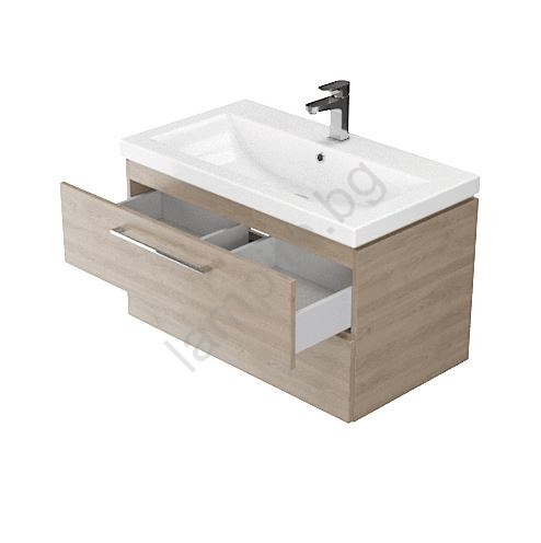 • Този висящ шкаф за баня се доставя с керамична мивка.
