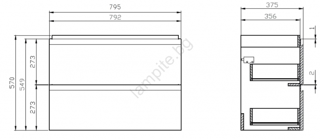 • Шкафът разполага с два просторни чекмеджета с плавно затваряне и скрити дръжки.