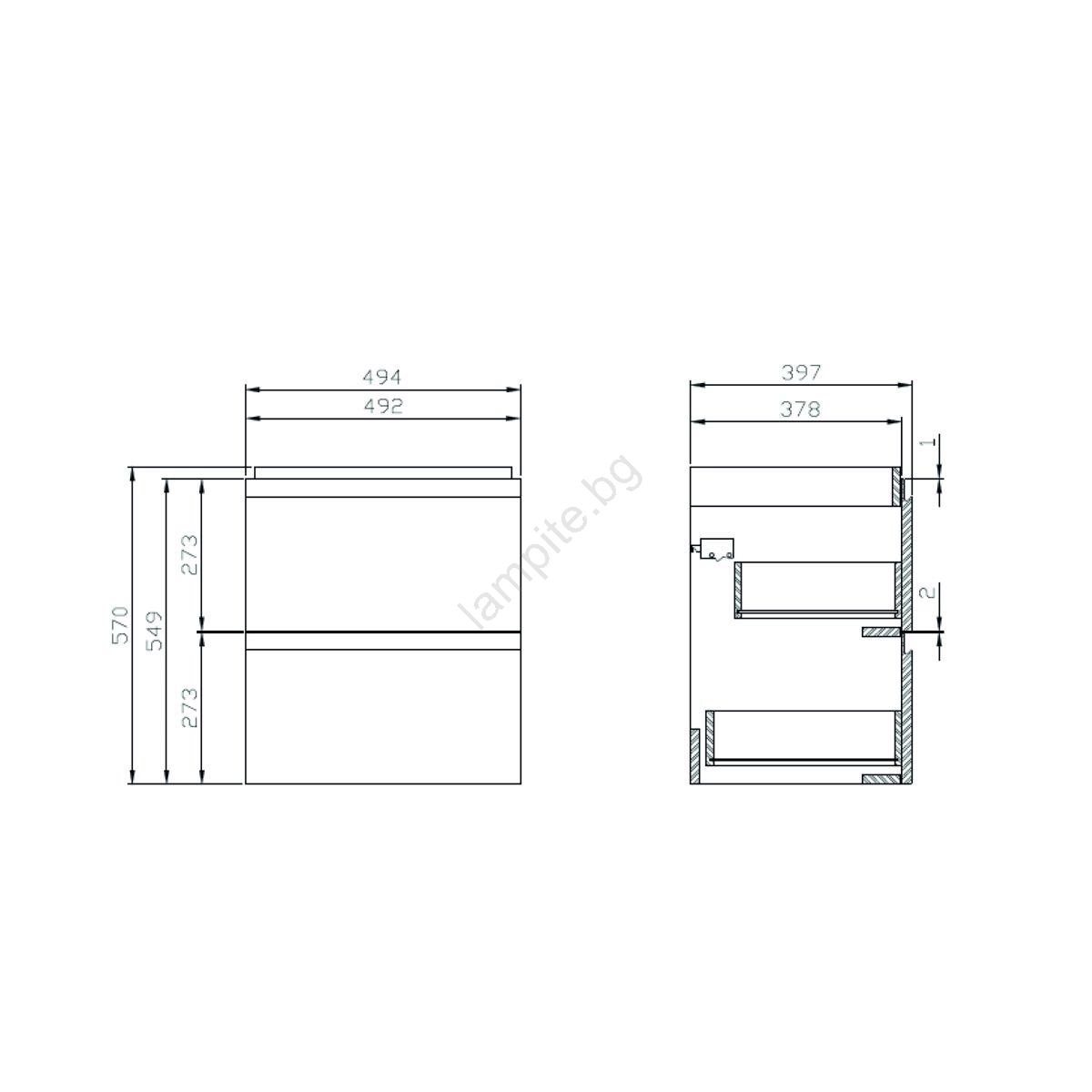 • Шкафът има два просторни чекмеджета с плавно затваряне.