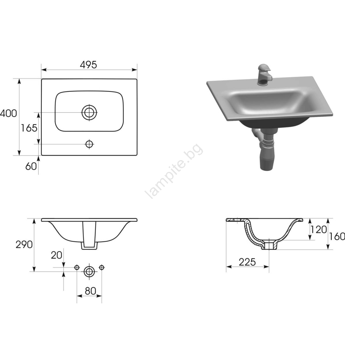 • Този висящ шкаф за баня се доставя с керамична мивка.