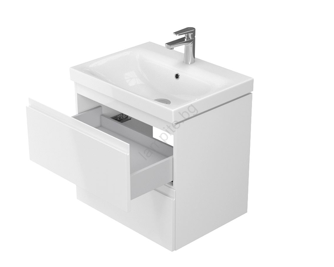 • Предната и корпусната част на шкафа са изработени от 16 мм ПДЧ с бял гланцов лак.