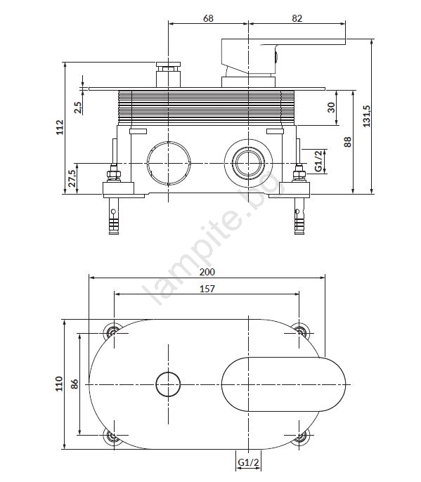 • Едноръкохватков смесител за вграждане в стена.