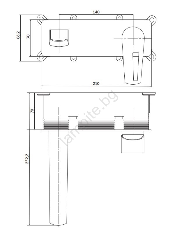 • Едноръкохватков смесител за вана за вграждане в стена.
