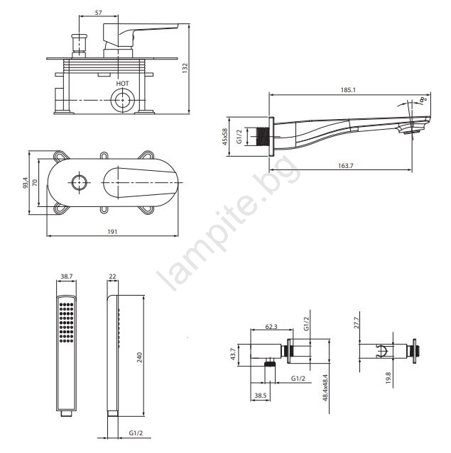 • Този комплект за вана с вграден смесител е елегантно допълнение към всяка баня.