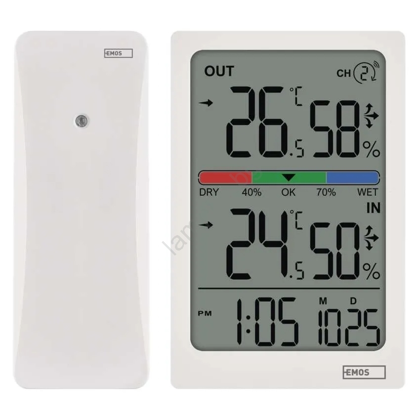 • Безжично измерване на външна температура (-40 °C до +60 °C) и вътрешна температура (-10 °C до +50 °C).