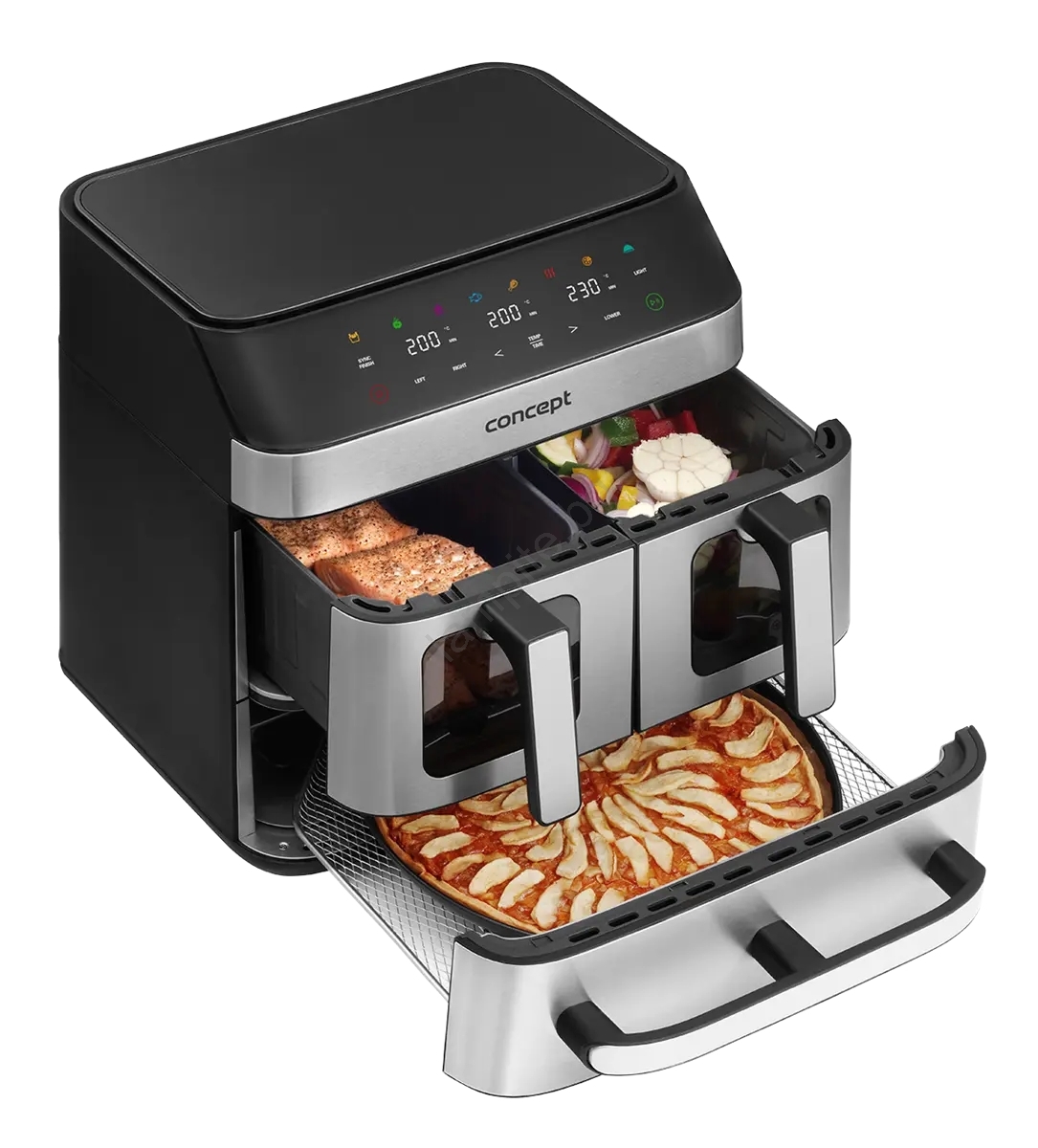 Concept FR9000 - Въздушна фритюрница PIZZA TRIO 18,5 л, 2700 W / 230 V, неръждаема стомана/черна