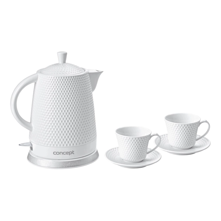 Concept RK0040 - Електрическа кана 1,5 l 1500W/230V бяла/керамична + 2 чаши с чинийки