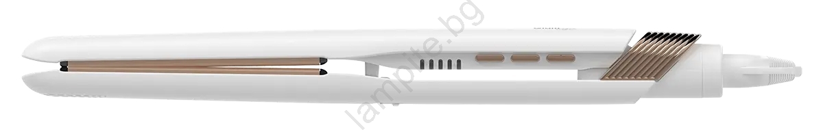 • Преса за коса с керамично покритие, което осигурява плавно плъзгане по косата и равномерно разпределение на температурата.