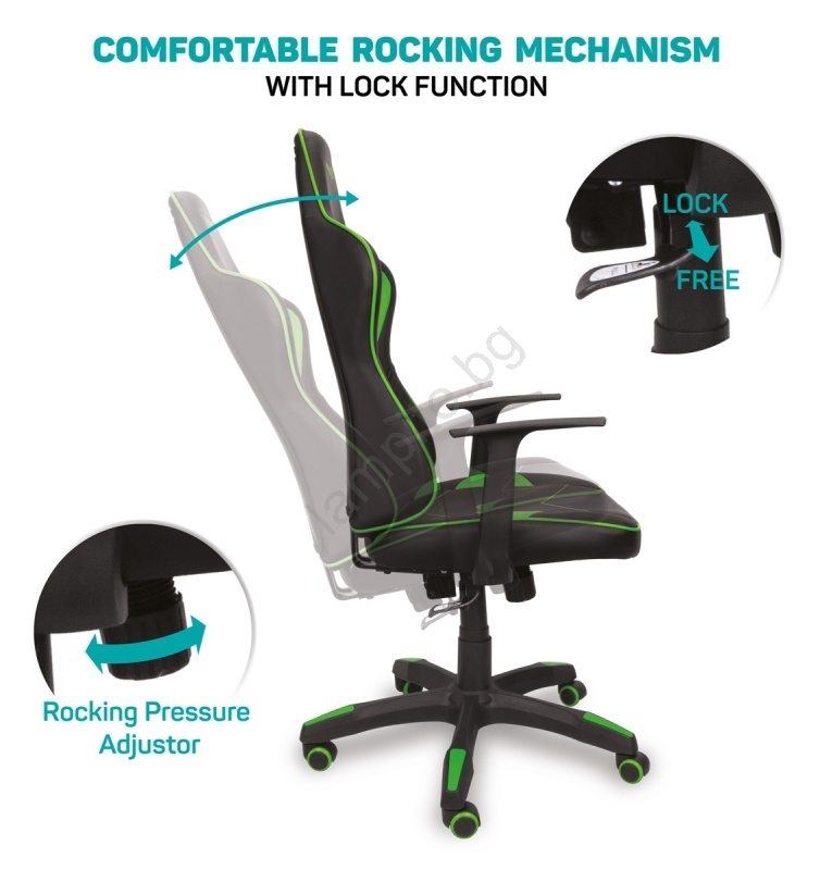 • Премиум геймърски стол с ергономично оформена седалка и тапицерия.