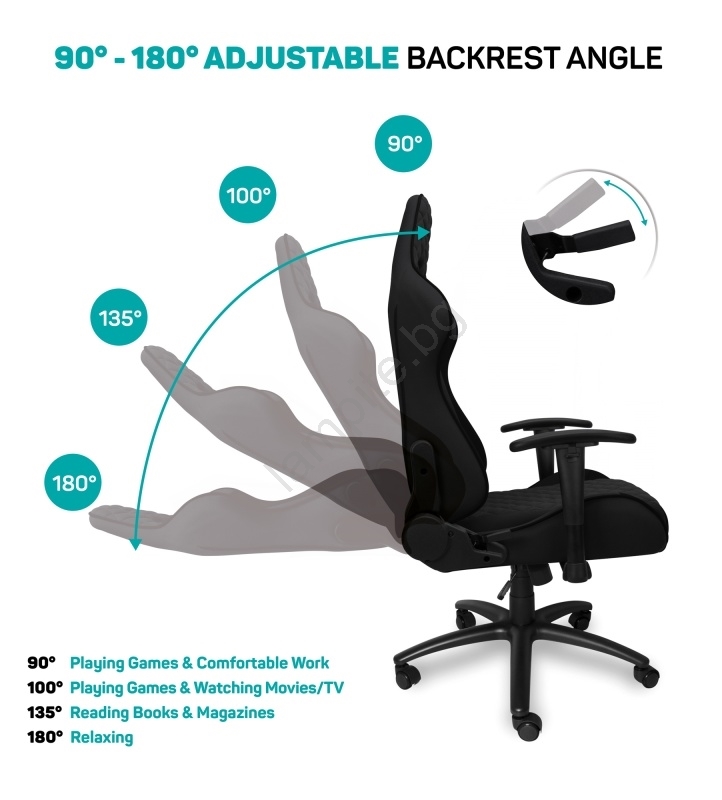 • Премиум геймърски стол с ергономично оформена обвивка и тапицерия.