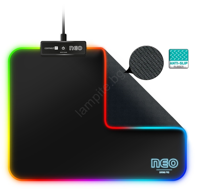 CONNECT IT CMP-3100-SM - LED RGB геймърска подложка за мишка 32x24,5 см черна