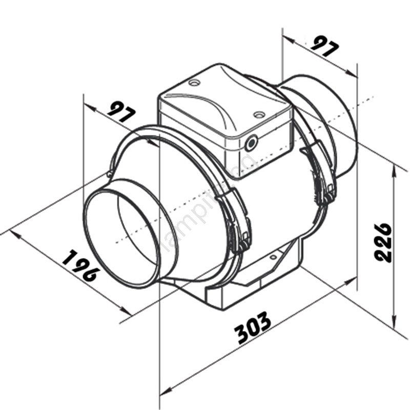 • Вентилаторът е съвместим с кръгъл въздуховод с диаметър 100 mm.