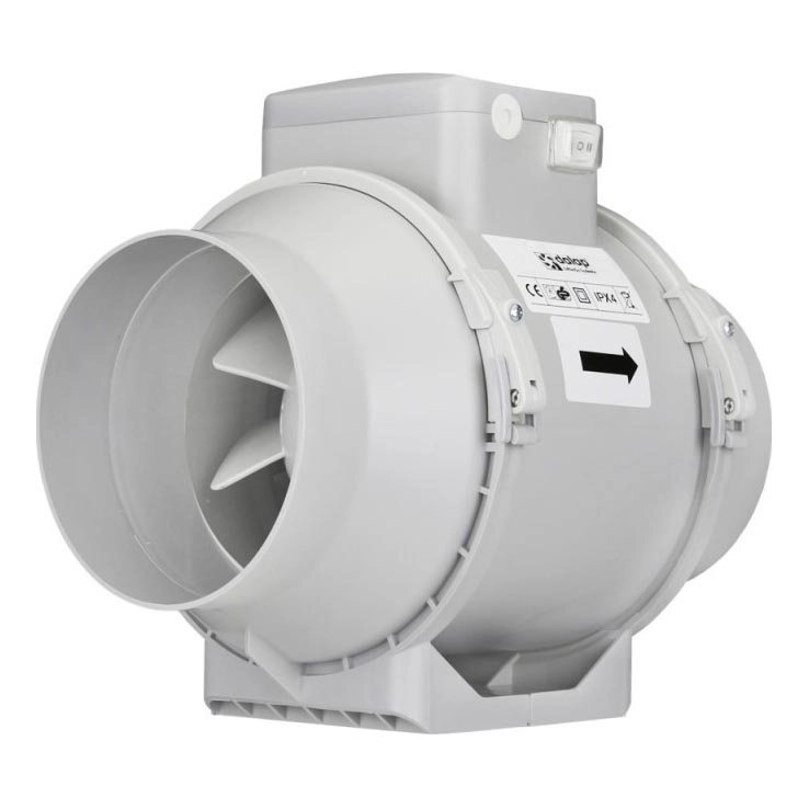 • Висока производителност и ниско ниво на шум на професионален тръбен вентилатор с вграден превключвател за скорости.