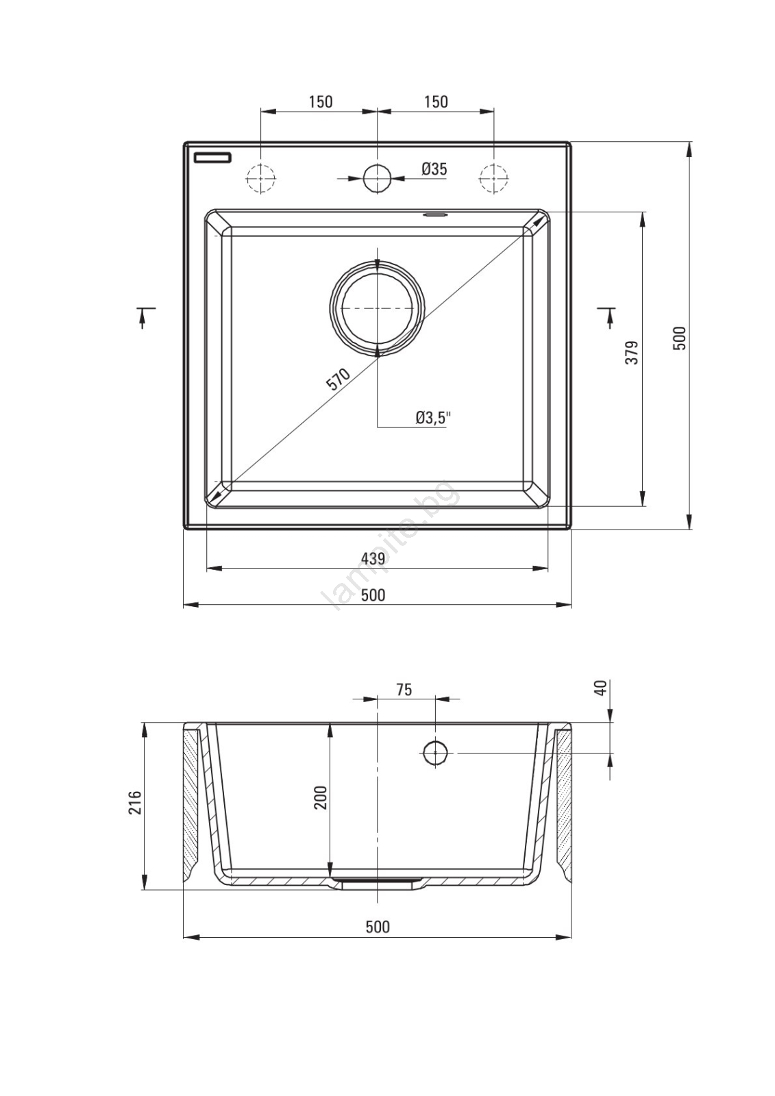 • Диаметър на оттока: 3,5''.