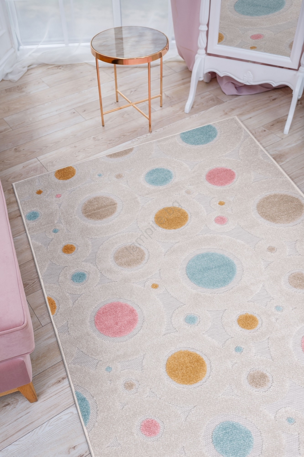 • Цветен детски килим с точки.